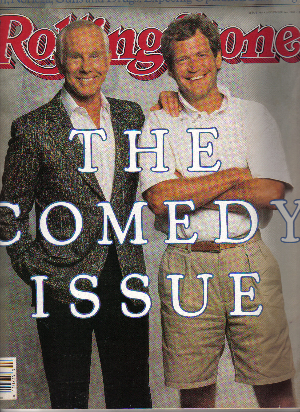Johnny Carson with “his favorite,” David Letterman, on the cover of Rolling Stone’s “Comedy Issue” November 3, 1988.